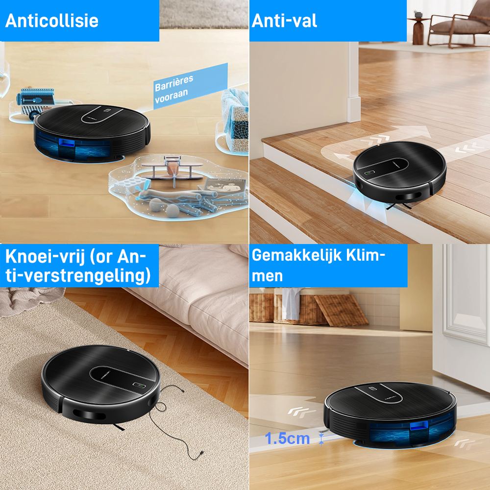 - Nauwkeurige lasernavigatie—Breng uw hele huis in kaart voor een efficiënte, grondige reiniging, zodat u afscheid kunt nemen van gemiste plekken.